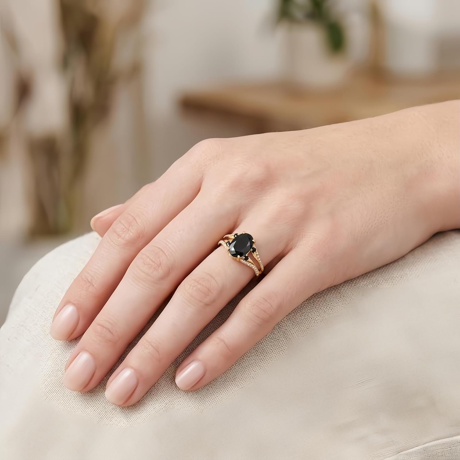 【Delivery Includes】1 x 14K Two-Tone Gold Oval Black Diamond & White Diamond Ring 1 x Premium Gift Box 1 x Jewelry Cleaning Cloth【Care Instructions】 1. Store your ring in a soft pouch or separate jewelry box when not wearing to prevent scratches. 2. Gently clean with the provided cloth; avoid harsh chemicals and ultrasonic cleaners. 3. Remove the ring before swimming, bathing, or performing tasks that might expose it to impact or chemicals. 4. Regularly inspect the setting for security and have gems professionally checked and cleaned annually.