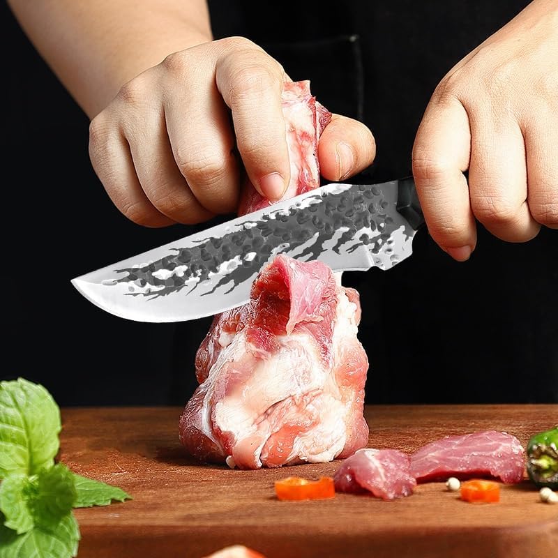 Knife Type:Boning knifeMaterial:5Cr15MovHandle Material:Solid woodFull length:255mm/10inBlade length:125mm/4.9inBlade width:40mm/1.6inBlade thickness:4mmWeight:270gPackage:1knife + 1coverNOTE:1.The entire process of production of this knife is completely manual.2.The surface of the forge knife is rough not as smooth as the knife produced by machines, but it did show the characteristics of the forging knife.3.Please allow slight measuring deviation due to manual measurement.
